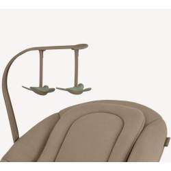 La hamaca para recién nacidos incluye juguetes con formas contrastantes, ideales para la estimulación visual y sensorial.
