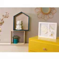 Inmortalice los bonitos recuerdos del bebé en este magnífico marco de fotos. Incluye un espacio para la foto y otro para la huella del pequeño pie o la manita del bebé. El kit de manualidades de moldeado en arcilla incluido le permitirá realizar la huella fácilmente. Una vez creada, podrá colgar el marco donde desee y decorar su interior. Un regalo para recién nacido original e ideal para agradar.