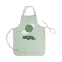 Nuestro delantal para niños con el tema Ozzo, el hipopótamo feliz, y las nubes felices, tiene lindos tonos empolvados. Tiene una práctica superficie impermeable, fácil de limpiar y protege la ropa de tu hijo. Úselo al hornear, cocinar, cenas familiares y actividades creativas.