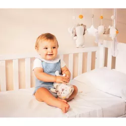 La caja musical tiene un sistema que permite parar la melodía en cualquier momento. Fácil de montar (manual de uso incluido). Los peluchitos se pueden lavar a 30º.