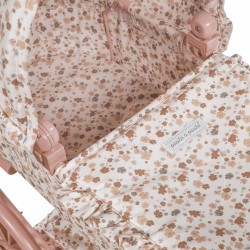 Medidas: 74 x 41 x 68 cm Ruedas 25 cm diámetro Se puede plegar para transportarlo fácilmente Incluye una bolsa canastilla y cesto de la compra para llevar todos los accesorios de las muñecas Medidas bolsito: 22.5 cm (ancho) x 14 cm (alto) x 5 cm (fondo). Tiene un asa para colgar del hombro o para colgar a los dos extremos de la silla Ideal para muñecas de 30 a 42 cm.