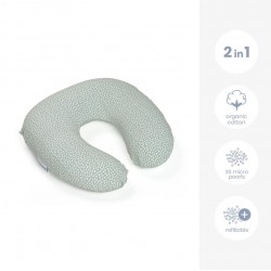 Materiales seguros y ecológicos: Malla de algodón orgánico certificada GOTS y microperlas hipoalergénicas certificadas Oeko-TexOEKO-TEX®, libre de sustancias nocivas para la piel del bebé y la mamá.