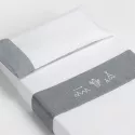 Juego de Sábanas de 50x90cm para la Minicuna Doco Sleeping de Cotinfant. Formado por sábana encimera y funda de almohada elaboradas 100% en algodón con estrella bordadas.