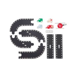 Este ingenioso parque de bomberos de madera está compuesto por 2 bomberos que circulan verticalmente por la rampa, un helicóptero y 4 vehículos: 2 coches, 1 ambulancia y 1 camión de bomberos con su escalera extraíble.