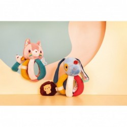 ¡Jeanne y su amiga la ratoncita son inseparables! Con este sonajero con asas, el bebé puede descubrir el mundo suavemente. Las 5 asas presentan diferentes materiales y patrones. Para agarrar a la pequeña ratoncita, el bebé tendrá que encontrar su camino entre las asas. ¡El tamaño y la forma de las asas están diseñados para adaptarse a las pequeñas manos del bebé!