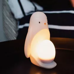 Diseño atractivo: Su forma de pingüino la convierte en una adición encantadora para cualquier habitación infantil. Brillo ajustable: Permite cambiar fácilmente la intensidad de la luz para adaptarse a diferentes situaciones, desde cambiar al bebé durante la noche hasta ayudarle a volver a dormirse con un resplandor tenue. Huevo portátil: A partir de los 18 meses, los niños pueden usar el huevo portátil para guiarse durante la noche, ya sea para ir al baño o para leer bajo las sábanas. Compacta y táctil: Su diseño compacto y su textura suave hacen que sea fácil de manejar y mover.