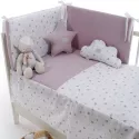 Pack de colcha y protector desenfundable con tejido lavable y relleno incluido. SIN Almohada. Con el protector evitas las corrientes de aire a tu bebe y a su vez lo proteges de posibles golpes con los laterales de la cuna evitando que sus brazos y sus pies puedan atraparse en la cuna. Esta pieza se ajusta de forma segura y fácil a la estructura de la cuna. La colcha tiene un diseño coordinado con el protector. En invierno el relleno mantiene cálido a tu bebé de manera constante. En verano al extraer el relleno la funda te sirve como colcha liviana. Oeko-Tex Standard 100 certificada, lo que significa que todos los materiales son probados y libres de sustancias nocivas.