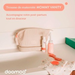 Mommy Vanity Sand reúne lo esencial para el cuidado posparto: 8 artículos imprescindibles realmente útiles, seleccionados para satisfacer las necesidades del cuerpo durante este momento tan delicado. Pantalones cortos de cintura alta ultracómodos, una compresa fría/caliente calmante, un gel de baño íntimo, un arrullo de gasa de algodón orgánico extragrande, un espejo, un folleto de consejos… todo está incluido para que disfrutes de los primeros días tras la llegada de tu bebé con tranquilidad.