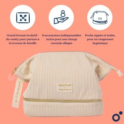Con su amplio bolsillo aislante con cremallera y su bolsillo interior, este neceser te permite organizar tus pertenencias de forma higiénica e intuitiva. Tras el parto, se transforma en un neceser elegante y espacioso : un auténtico compañero para el día a día del que no querrás prescindir.