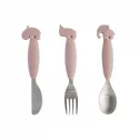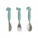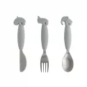 Lindo y práctico juego de cubiertos Yummy + de fácil agarre para manos pequeñas con grandes ambiciones. El cuchillo Ozzo, el tenedor Nozo y la cuchara Elphee harán que aprender a comer por su cuenta sea divertido y fácil.