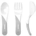 Cubiertos de aprendizaje cómodos, cortos y fáciles de usar para tu bebe que va a empezar a comer por su cuenta. Tienen una superficie suave al tacto y un acabado práctico que proporciona un agarre más firme. No contiene BPA.