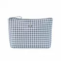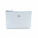 Está elaborado en resistente y suave polipiel impresa con cuadro vichy y con una forma para acomodar fácilmente en el bolso canastilla a un lado.