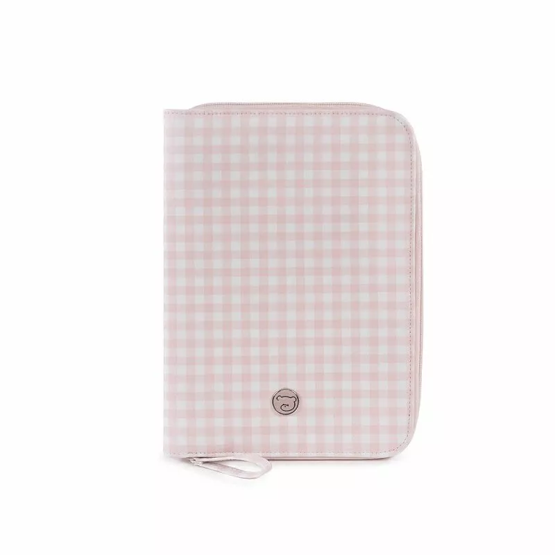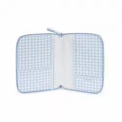 Este libro portadocumentos esta elaborado en resistente y suave polipiel impresas con cuadro vichy, cuenta con bolsillos en cada lado y está forrado en el interior. Cuenta con un práctico cierre de cremallera para así guardar seguro el libro de nacimiento y todos los documentos de tu bebé.