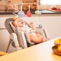 Compatível com a cadeira alta Polly Armonia, este centro de entretenimento é ideal desde o nascimento e foi concebido para estimular os sentidos do bebé. Graças às suas diferentes formas, cores e materiais, contribui para o desenvolvimento da visão, da audição e do tato, oferecendo uma experiência sensorial completa desde os primeiros meses de vida.