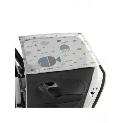 Com este guarda-sol para automóvel, deixe o ar circular no interior do automóvel e assegure-se de que o seu filho está protegido do sol (proteção solar UVB/UVA 30+) e dos insectos. É fabricado em poliéster ultra-leve e é muito fácil de instalar, pois não necessita de ímanes nem de ventosas. Cobre 100% da superfície da janela e é adequada para a maioria dos veículos.