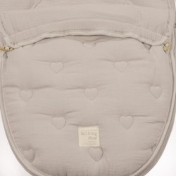 A capa do saco Sintra é feita de musselina macia no interior em 100% algodão. É ideal tanto para a alcofa como para o porta-bebé e tem várias aberturas (ilhós) e ajustes para se adaptar à maioria dos porta-bebés.