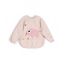 Este bonito babete com mangas é perfeito para proteger a roupa do seu filho durante as refeições. Com um bolso prático para apanhar a comida que cai, torna a hora das refeições mais arrumada.