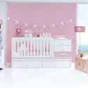 Criámos a nossa cama de bebé convertível Bubble com detalhes coloridos para que, além de lhe oferecer todas as funcionalidades das nossas camas de bebé convertíveis, se apaixone pelos seus detalhes infantis. Temos a certeza de que viverá com ela os melhores momentos da vida: abraços, beijos, histórias, sorrisos, ternura, sonhos, etc. Não perca todos os detalhes desta magnífica cama de grades convertível, as suas cores, acabamentos e opções de personalização: escolha entre duas gavetas com rodas de grande capacidade ou uma cama de grades inferior de 90x190 cm para dormir ao lado do seu bebé ou para uma visita inesperada. Vai adorar! Como o resto das nossas camas de grades convertíveis, adapta-se às diferentes etapas do bebé: 1ª etapa - cama de grades: 70x140 cm com sistema de grades para subir e descer para facilitar o acesso à cama. Mesa com 3 gavetas e um livro com dois espaços de grande capacidade. Um tapete muda-fraldas amovível e lavável ref. 631 pode ser instalado opcionalmente em cima da mesa e do livro. A parte inferior da cama de grades inclui 2 gavetas com rodas ou uma cama de grades com rodas, conforme a opção que mais lhe convier. 2ª fase - cama júnior: a calha da cama de grades pode ser retirada, deixando uma cama júnior de 70 x 140 cm. Opcionalmente, pode adquirir o corrimão júnior ref. JBJ502 para maior segurança da criança e a escada de brincar ref. JU400 para facilitar o acesso à cama. 3ª etapa - quarto júnior: o descapotável pode ser desmontado e transformado em 4 móveis diferentes para o quarto. Uma cama de 90 x 200 cm, uma mesinha com 3 gavetas, uma estante com rodas e uma secretária de 145 x 68 cm.