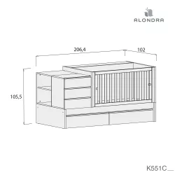 Cama de grades convertível Alondra SERO KUBO com gavetas inferiores