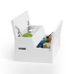 Pequena escada e caixa de brinquedos, a invenção ideal para quando o bebé já anda sozinho e consegue entrar e sair da sua cama ou berço convertível de forma autónoma. Tem duas pegas com as quais pode ser levada para outra divisão onde a criança precise dela para aceder à casa de banho ou a outro local. As tampas dos degraus podem ser abertas, para que os brinquedos possam ser guardados no interior, e fecham com um sistema de fecho suave para evitar acidentes