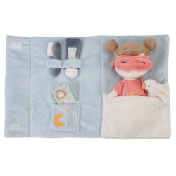 Está na hora de ir para a cama! Olha para a Rosa com o seu pijama giro, ela não vê a hora de dormirmos juntos. Ela preparou a sua mala com todos os objectos essenciais para a noite. Claro que o seu peluche preferido, o Pequeno Ganso, vai com ela. Onde é que querem dormir juntos? No vosso quarto ou estão a planear uma visita a casa dos vossos avós? Este conjunto de pijama para bonecas vai permitir muitas horas de brincadeira a fingir. A mala azul-clara macia dobra-se para se transformar numa cama e transporta os acessórios de cama mais encantadores para imitar o ritual da hora de dormir. O seu filho pode vestir o pijama à Rosa, preparar-se para a hora de dormir com a escova e a pasta de dentes, aconchegar-se com a Gansinha e ler uma história de embalar do livro incluído com ilustrações de animais. Na hora de dormir, o bebé pode colocar a máscara de dormir da Rosa e cobri-la com o cobertor fofinho. A Rosa noite-noite.