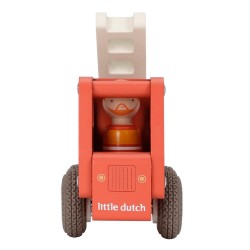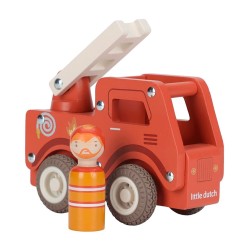 O camião dos bombeiros Little Dutch é feito de madeira sustentável certificada pelo FSC e tem rodas de borracha que protegem o chão e permitem um movimento suave.