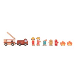 A robustez do material torna o produto durável, permitindo que as crianças o manuseiem com confiança. Além disso, inclui figuras de madeira que convidam ao jogo imaginativo, favorecendo a narração de aventuras como salvamentos ou patrulhas de bombeiros, e promovendo o desenvolvimento do raciocínio criativo e da coordenação através do jogo.