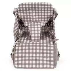 Com o seu design moderno e dobrável em xadrez bege, oferece um assento seguro e confortável para o seu bebé em movimento. Inclui correias ajustáveis para se adaptar à maioria das cadeiras de adulto, arnês de segurança e um prático compartimento de arrumação.