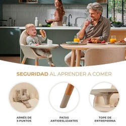O seu filho vai sentar-se na FINI 2 desde o momento em que é altura de alargar a sua alimentação até à idade pré-escolar. Não é apenas para aprender a comer sozinho, mas também para brincar. A cadeira alta FINI 2 tem um tabuleiro regulável com placa amovível e um apoio para os pés regulável. Tem também um arnês de 5 pontos que se adapta facilmente ao crescimento do seu filho. As pernas têm almofadas antiderrapantes que evitam que o móvel deslize e risque o chão.