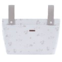 Pode ser fixada a qualquer tipo de carrinho de bebé e também pode ser transportada ao ombro graças a uma correia no interior.