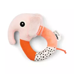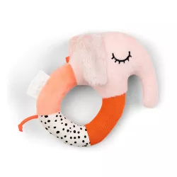 Os mais pequenos vão gostar de brincar com a Elphee. O guizo em forma de anel tem elementos de cor poeirenta, coral e papaia e um elemento pontilhado divertido.
