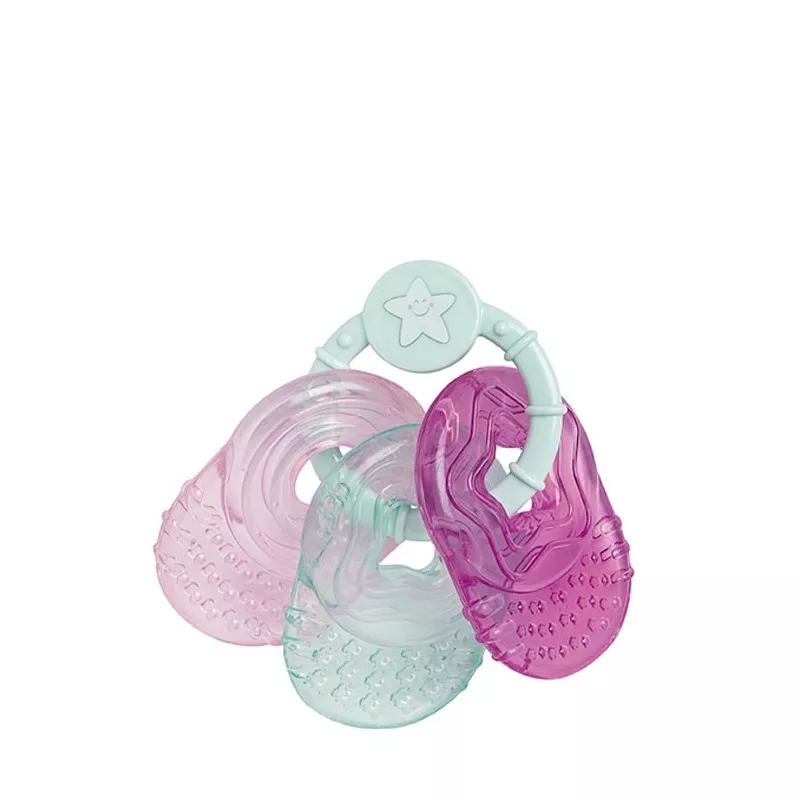 Este mordedor de água contém três mordedores num só, que podem ser separados do anel central e colocados no frigorífico para ajudar a reduzir o inchaço e a sensibilidade. De tamanho pequeno e fácil de agarrar para o tamanho das suas mãozinhas, incluem diferentes texturas que massajam suavemente as gengivas para as acalmar.