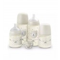 Inclui: 2 biberões de 150 ml com tetina SX Pro de fluxo lento (S) desde o nascimento, 2 biberões contínuos de 270 ml com tetina SX Pro de fluxo médio (M) e uma chupeta dos 0 aos 6 meses com tetina SX Pro.