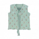 Possui uma correia de segurança que deve ser colocada entre as pernas para evitar que o colete deslize sobre a cabeça, que está protegida com neopreno para evitar fricções entre as pernas.