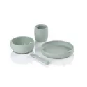Inclui prato, tigela, colher e copo em formas simples de animais. Os 4 elementos podem ser empilhados para ocupar um espaço mínimo na arrumação.