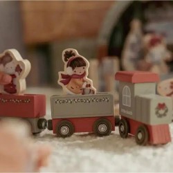 Um bonito comboio do Advento em madeira com pequenas caixas numeradas que escondem 24 surpresas.