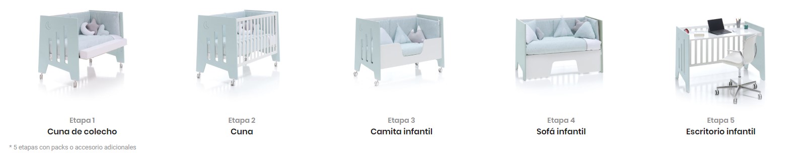 Cinco possibilidades de utilização diferentes que permitem prolongar a vida útil desta prática cama de grades 60x120cm.