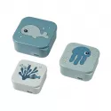 As bonitas caixas de snacks Sea Friends em diferentes tons de pó têm ilustrações bonitas com temas do oceano.