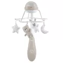 CONTROLO REMOTO: Este mobile de berço tem um controlo remoto para personalizar e combinar as suas funções como preferir: rotação dos 4 peluches suspensos, música com melodias relaxantes e projeção do arco-íris.