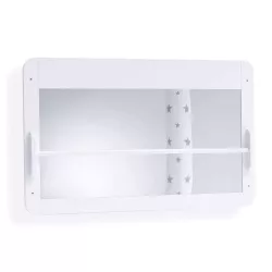 - 2 posições de montagem diferentes (horizontal e vertical) - 3 barras de apoio reguláveis em altura - Espelho de metacrilato anti-quebra - Não inclui material de fixação à parede (parafusos e buchas)