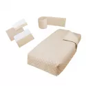 Edredão reversível e evolutivo. Composto por duas peças unidas por um fecho de correr. A peça mais comprida pode ser utilizada no minicama e em conjunto no berço de 120 cm.