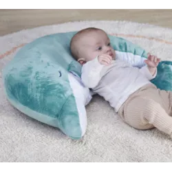 Desde os primeiros dias de vida do bebé, os pais podem utilizar o golfinho de peluche como apoio para segurar as costas e a cabeça do bebé quando este passa algum tempo no seu tapete de brincar. A forma do peluche foi concebida para envolver a criança numa suavidade calmante, mas também para se adaptar à forma arredondada da barriga da mãe, tornando-o um suporte ideal para alimentar o bebé.