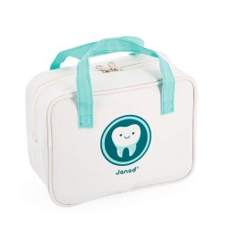 quem é que vai fazer uma visitinha ao dentista? Com este bonito kit para o dentista perfeito, todo o consultório do dentista vem para casa para desfrutar de momentos de brincadeira e riso com a família ou amigos! as crianças a partir dos 3 anos ficarão encantadas por se colocarem no lugar do especialista e praticarem com os numerosos acessórios de madeira deste estojo: pinças, uma seringa para anestesia, uma dentadura com 8 dentes amovíveis, um espelho dentário para encontrar a cavidade mais escondida, um torno, um tubo de pasta de dentes e uma escova de dentes para que o paciente possa sair com as suas pequenas amostras! 2 cartões ilustrando radiografias dentárias permitem às crianças fazerem os seus diagnósticos. Todos os elementos em cores suaves (tinta à base de água) são guardados no saco transportável decorado com um simpático dente sorridente: ideal para tirar o drama das visitas ao dentista! Este produto é feito de material certificado FSC® e outros materiais controlados.