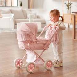 Perfeito para bonecas de 30 a 42 cm, este carrinho tem o estampado da coleção Olivia e inclui um saco e um cesto na parte inferior para transportar todos os acessórios da boneca. É dobrável e muito resistente, rápido de montar e dobra-se para ser guardado.