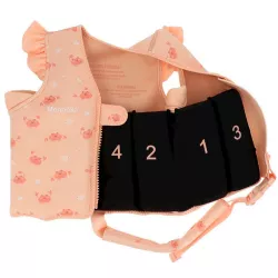 Este colete tem 8 compartimentos, cada compartimento tem 3 elementos de flutuação. São estes elementos que podem ser retirados pouco a pouco para que a criança possa melhorar a sua capacidade de flutuar sem ajuda. Outros coletes só têm 8 peças, pelo que a capacidade de flutuação muda mais bruscamente quando as peças são retiradas uma a uma.
