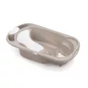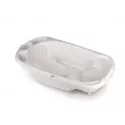 Idade de utilização: 0-12 meses aprox. Tem 2 assentos anatómicos com almofadas antiderrapantes (0-6 meses e 6-12 meses), compartimentos para sabonetes e esponjas, balde de duche, pés de apoio, tampão de escoamento. Acessório opcional: Suporte universal art. C524. Dimensões e peso: 97 x 52,5 x 23 h. Kgrs: 1,9.