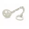 Sencilla pinza para mantener sujeto el chupete e impedir que se caiga al suelo, evitando cualquier tipo de infección. Artículo práctico y necesario para la vida cotidiana.