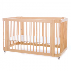 Enamórate de cada detalle de la cuna de madera natural, transformable en cama 70x140 cm CREA DUE Nomad. De líneas sencillas y estilo atemporal, será perfecta para dar calidez a cualquier estancia de la casa gracias a las tonalidades que incorpora. Es una cuna con ruedas convertible 3en1. De cuna 70x140 cm se puede transformar en cuna de colecho, para practicar colecho (opcional), en camita Montessori y en escritorio infantil. ¡Una opción supercompleta! Además, puedes vestirla como más te guste con los coordinados textiles disponibles.