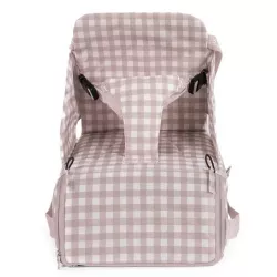 Con su diseño plegable y moderno en cuadros beige, ofrece un asiento seguro y cómodo para tu bebé en cualquier lugar. Incluye correas ajustables para adaptarse a la mayoría de sillas de adulto, arnés de seguridad y un práctico compartimento de almacenamiento.