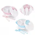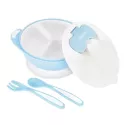 • Tazón para bebés 4 en 1;• El juego incluye un tazón, cuchara, tenedor y plato dividido;• Ventosa que evita volteos;• Capacidad 700 ml;• Adecuado para niños mayores de 6 meses;• Sin BPA.